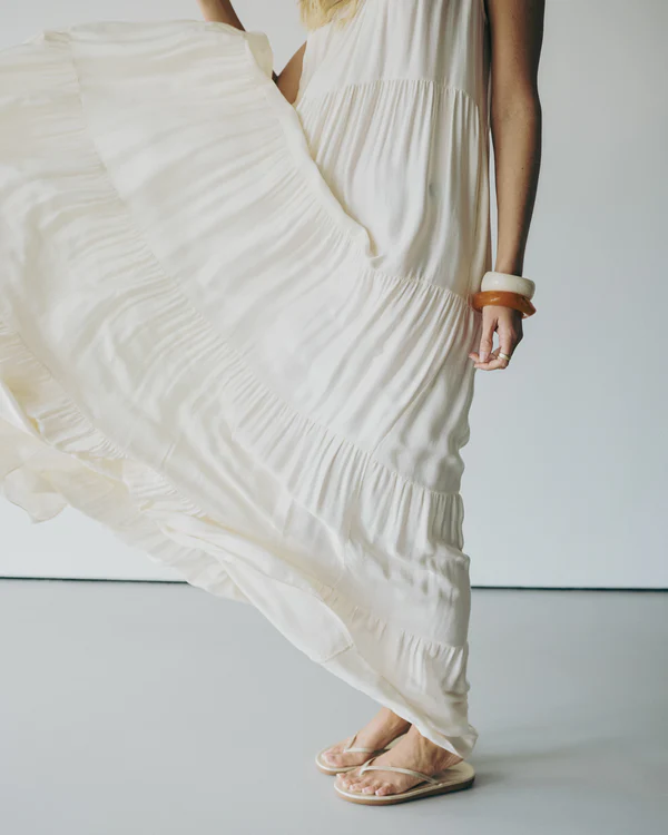 Noelle Strappy Tiered Satin Maxi Dress | Ivory