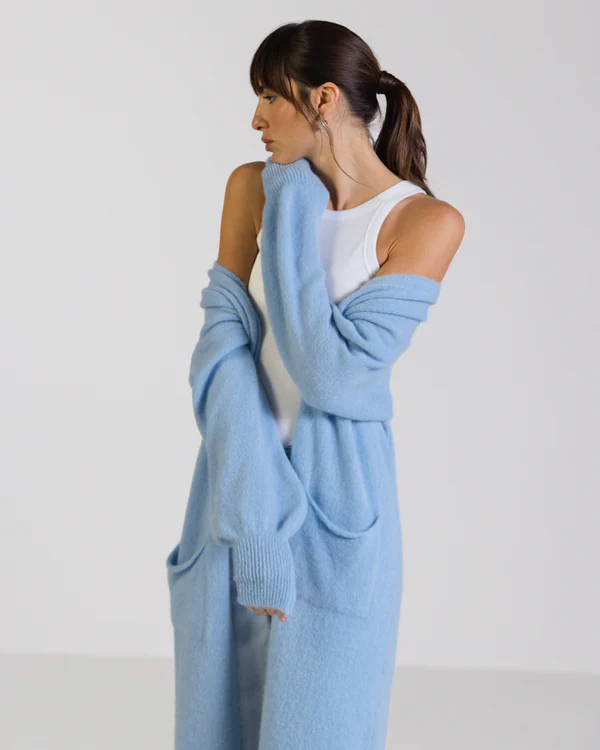 Made in Italy from a luxurious baby alpaca blend, offering warmth without weight. Its open, relaxed silhouette is designed for effortless layering. Simply throw it on over jeans, tailored trousers, or even a slip dress.